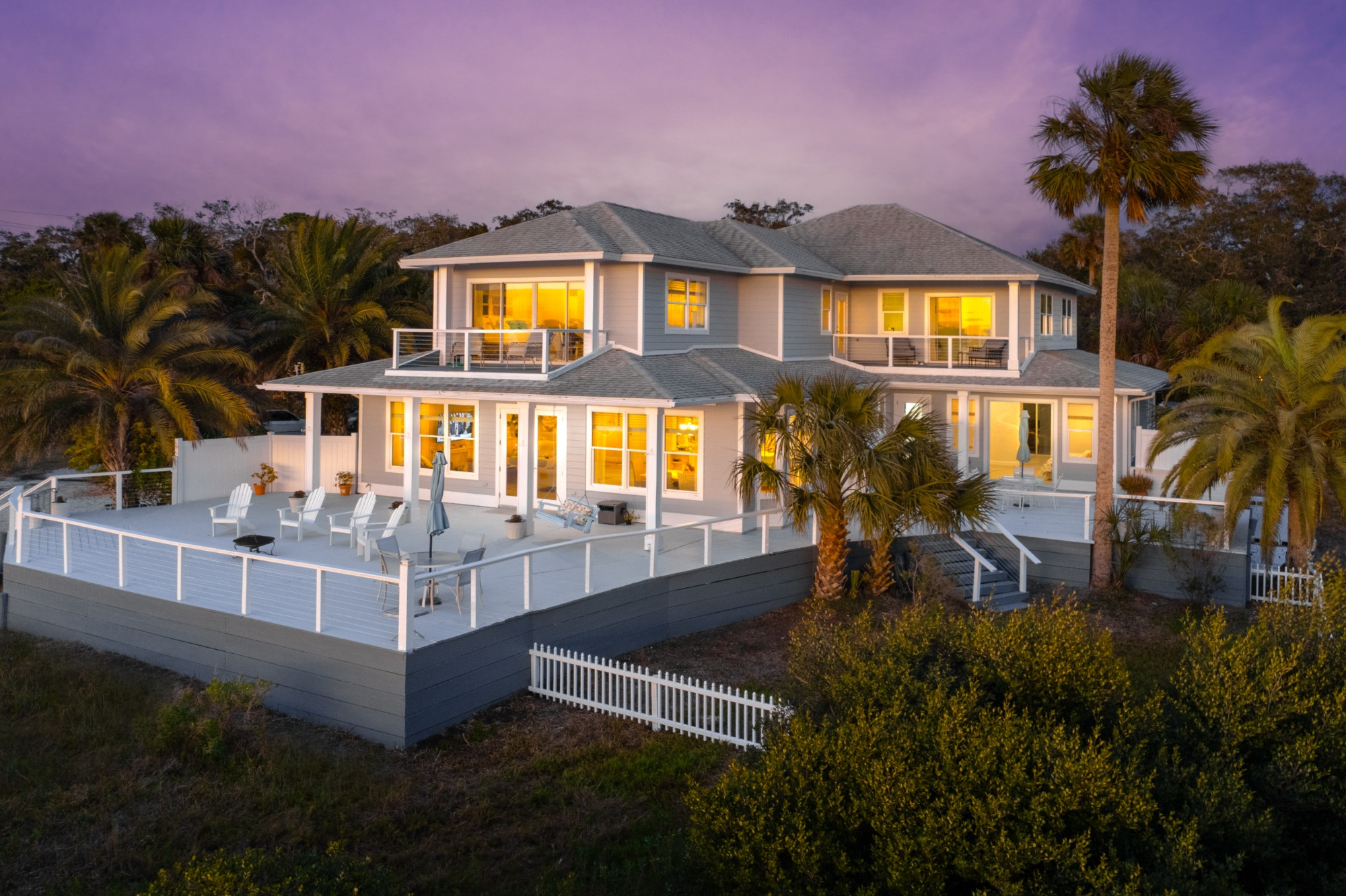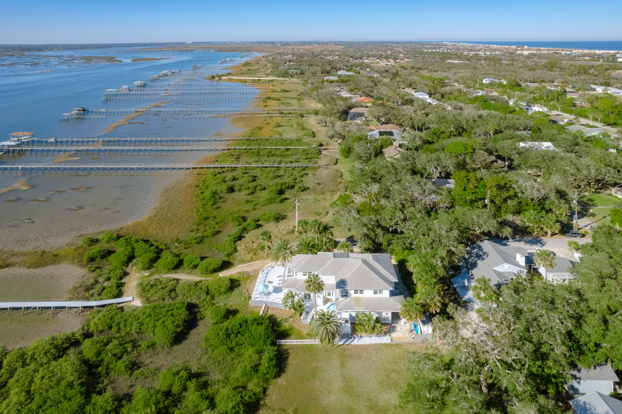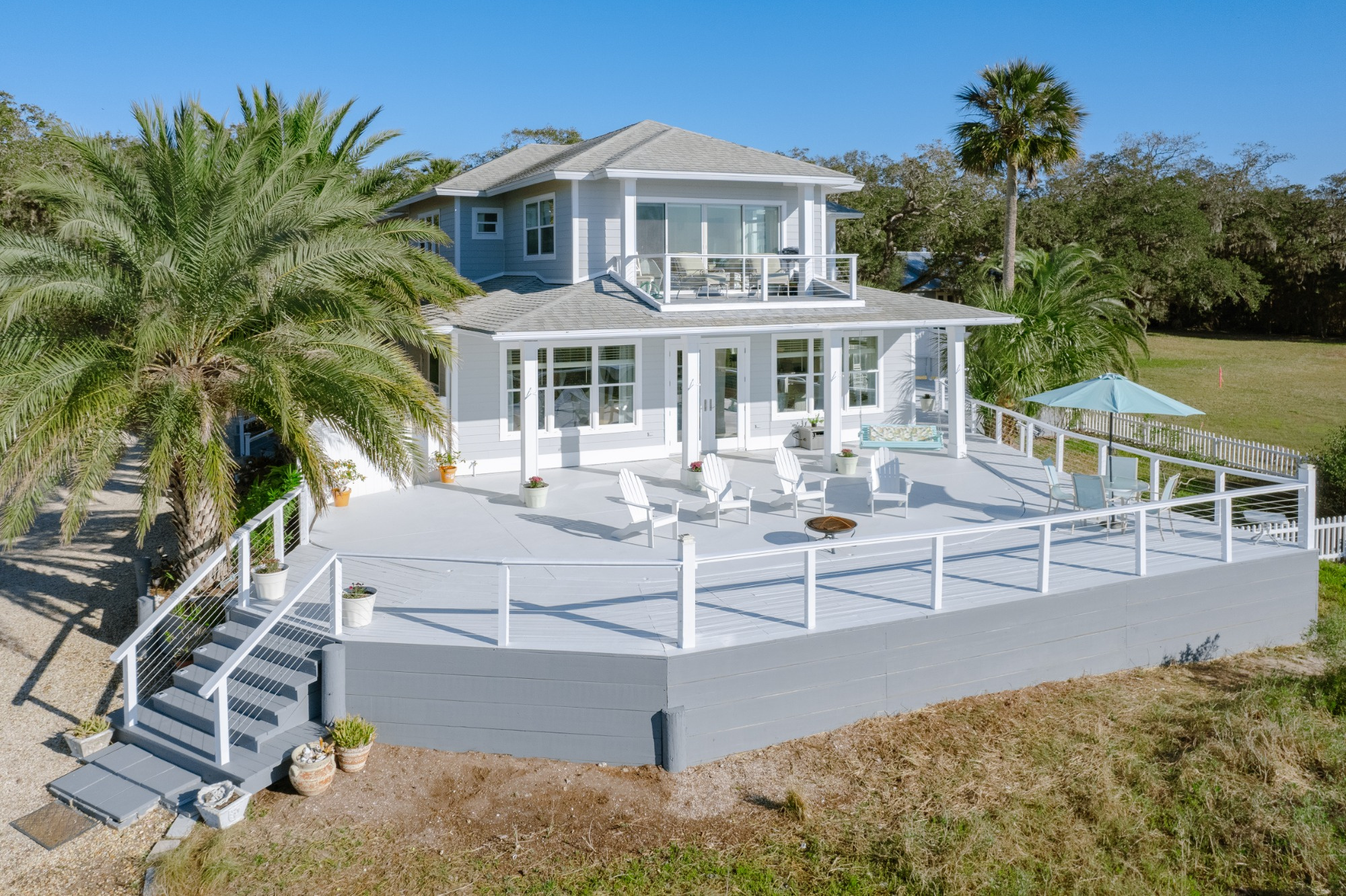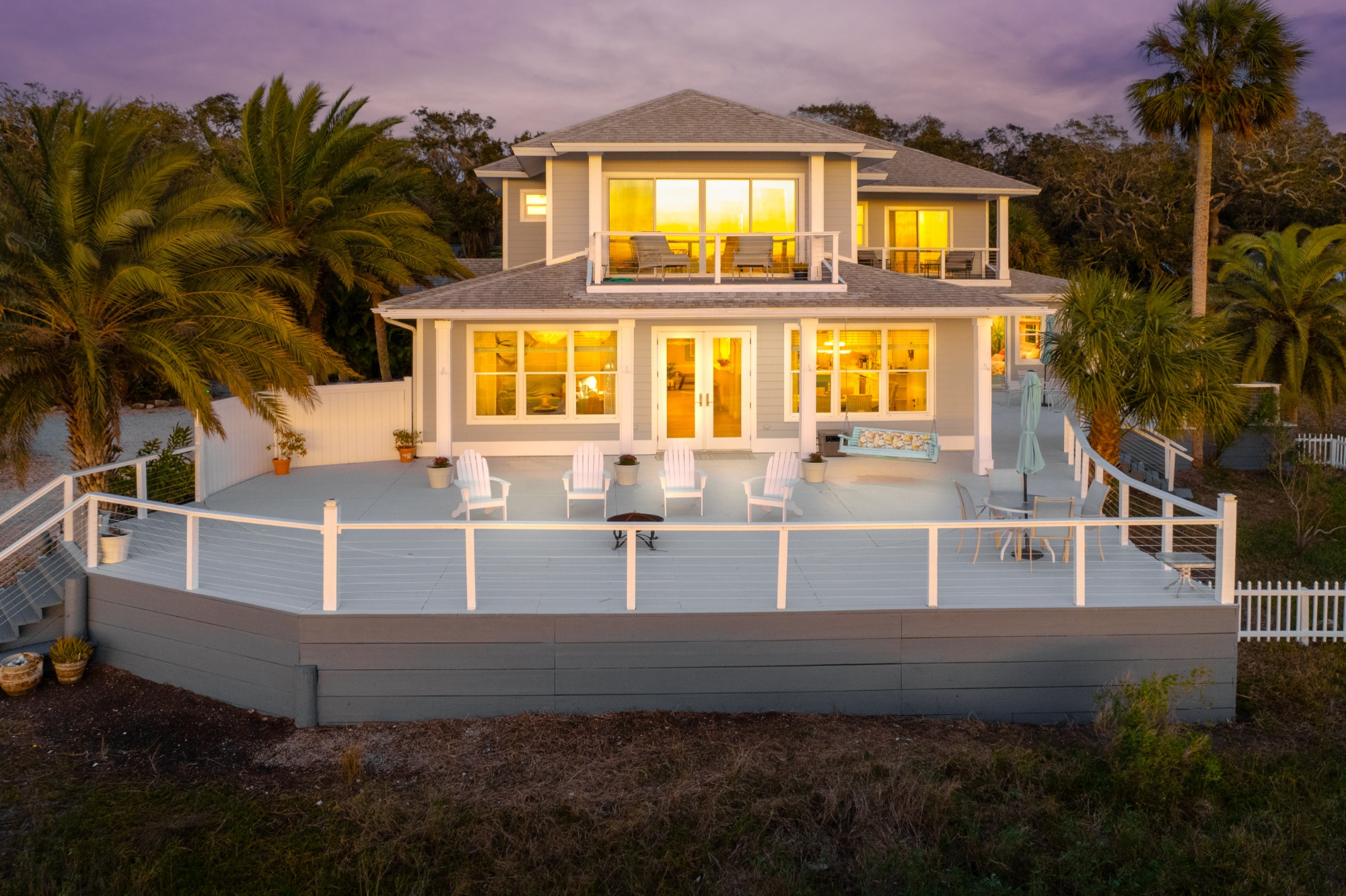 Tucked away at the end of a secluded street along the water’s edge, this elegant and tranquil enclave is home to an exquisite Coastal Craftsman Estate—offering the pinnacle of Intracoastal waterfront living. Perfectly poised on what feels like a private peninsula along the Intracoastal Waterway, this breathtaking residence delivers sweeping water views from every bed and even every window, with pristine conservation land across the waterway that will remain forever unspoiled. This rare and coveted location offers direct street access to the drivable white sands of St. Augustine Beach. Stunning architectural details and panoramic views of the ever-changing sandbar just beyond your doorstep—particularly captivating at low tide. Expansive porches and decks invite you to soak in the surrounding waterways. Whether you enjoy boating, fishing, or simply unwinding with breathtaking sunsets, this property is a true waterfront paradise.