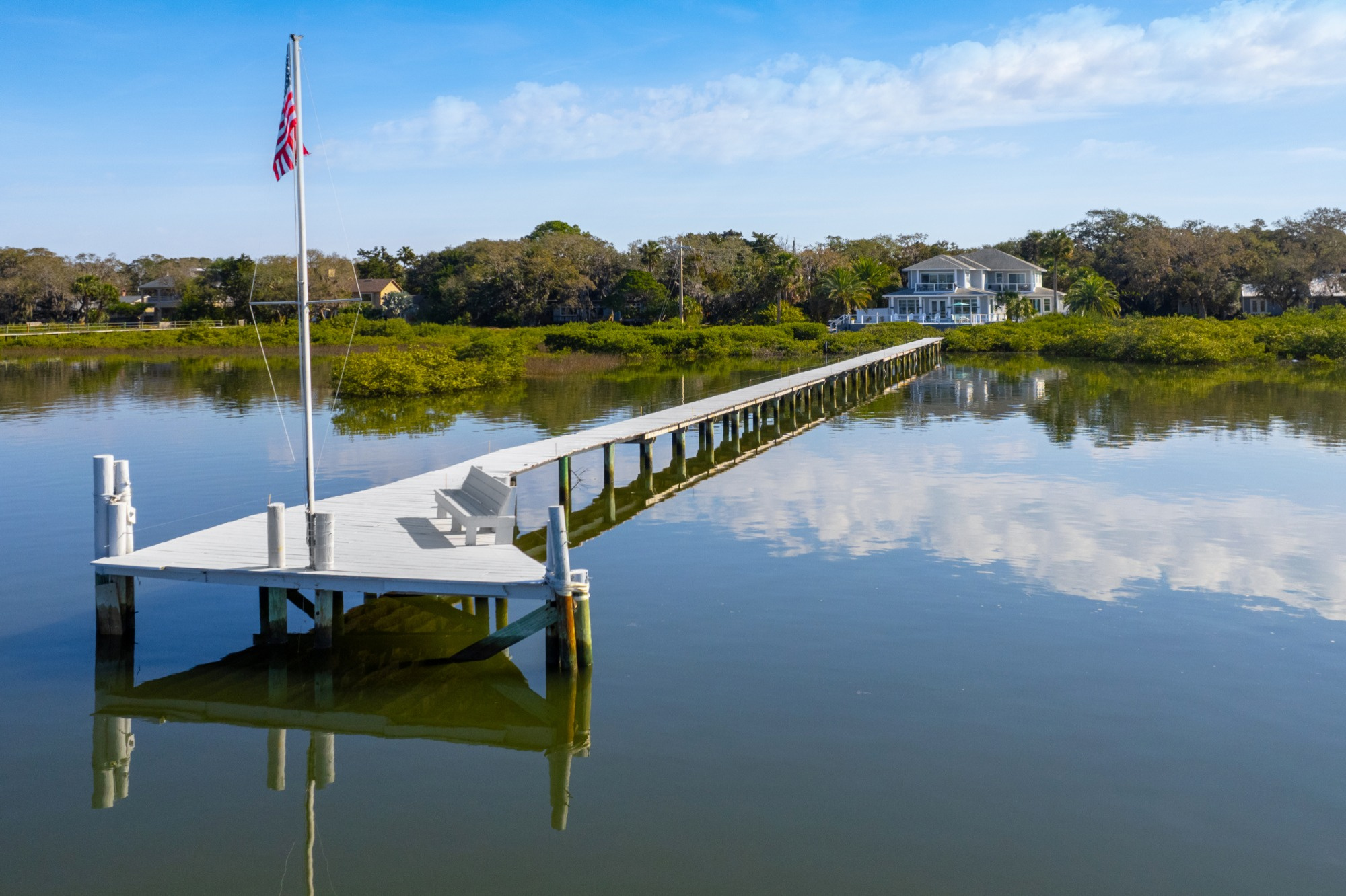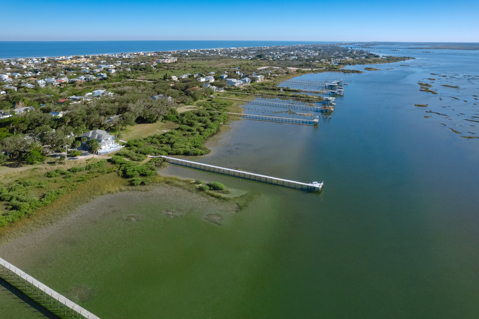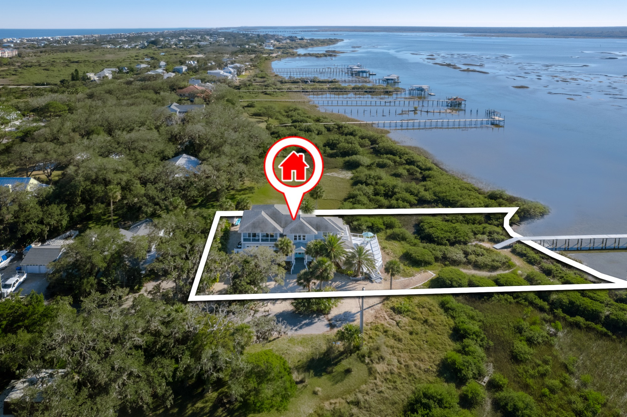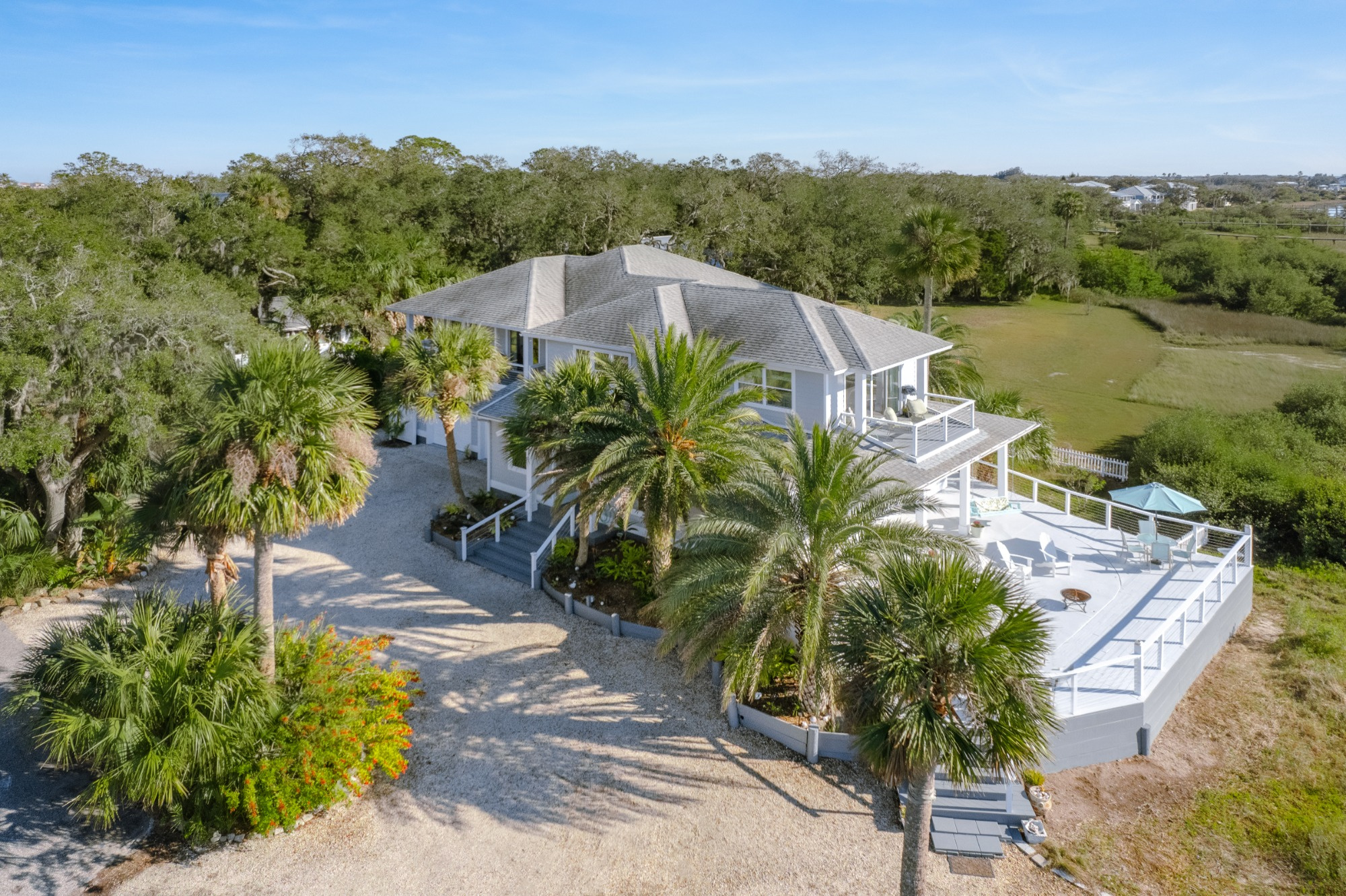 Tucked away at the end of a secluded street along the water’s edge, this elegant and tranquil enclave is home to an exquisite Coastal Craftsman Estate—offering the pinnacle of Intracoastal waterfront living. Perfectly poised on what feels like a private peninsula along the Intracoastal Waterway, this breathtaking residence delivers sweeping water views from every bed and even every window, with pristine conservation land across the waterway that will remain forever unspoiled. This rare and coveted location offers direct street access to the drivable white sands of St. Augustine Beach. Stunning architectural details and panoramic views of the ever-changing sandbar just beyond your doorstep—particularly captivating at low tide. Expansive porches and decks invite you to soak in the surrounding waterways. Whether you enjoy boating, fishing, or simply unwinding with breathtaking sunsets, this property is a true waterfront paradise.