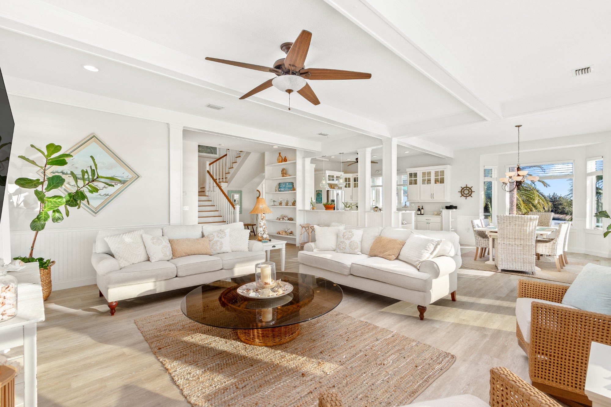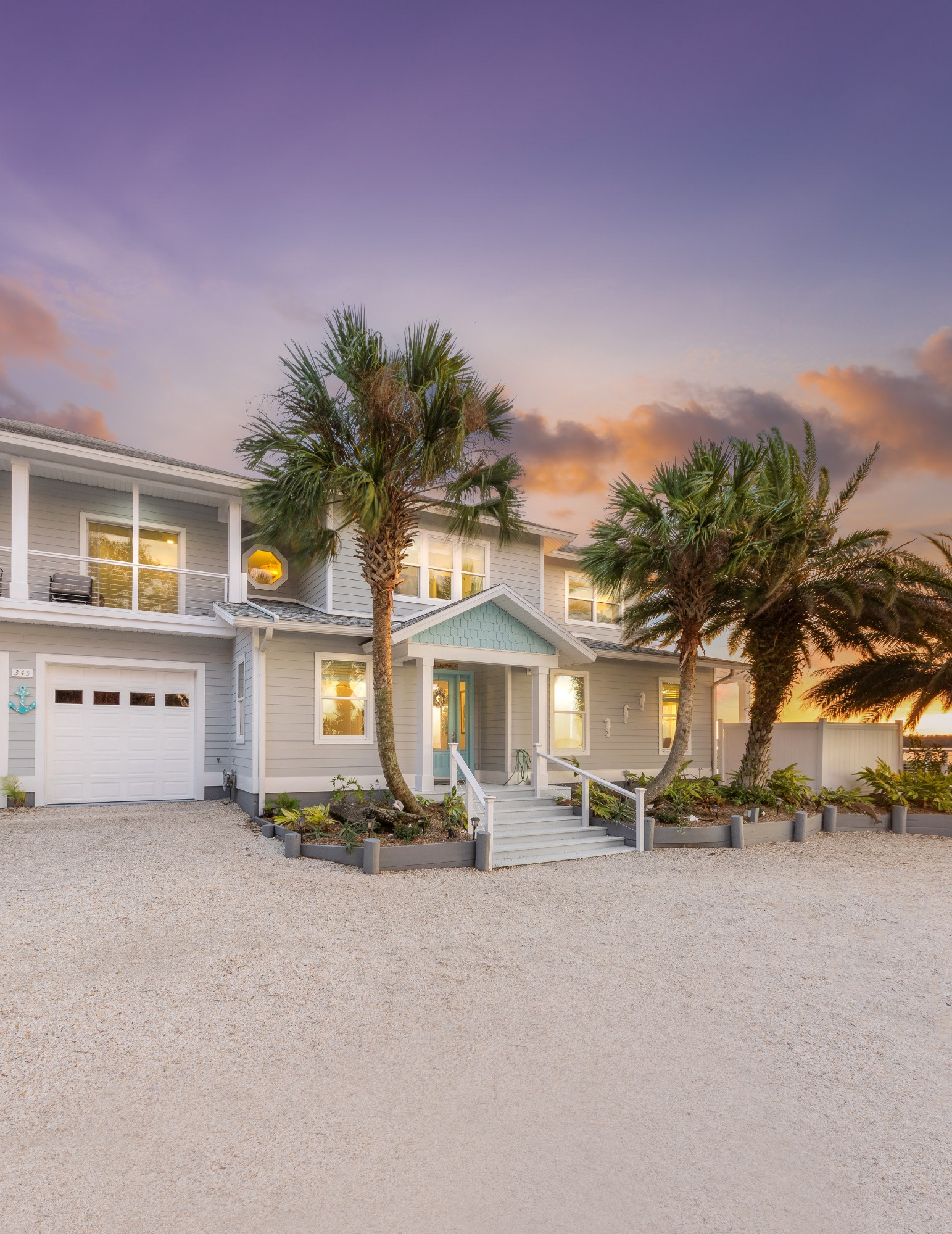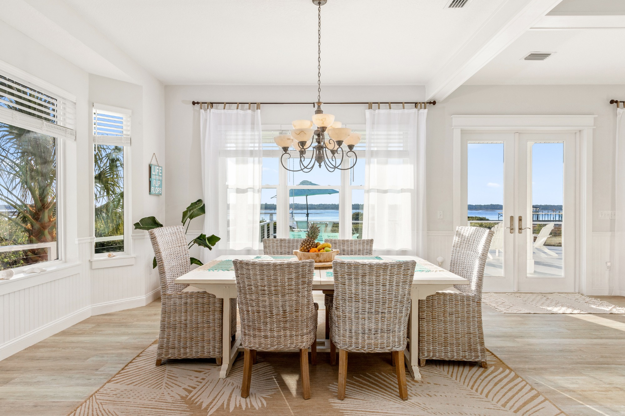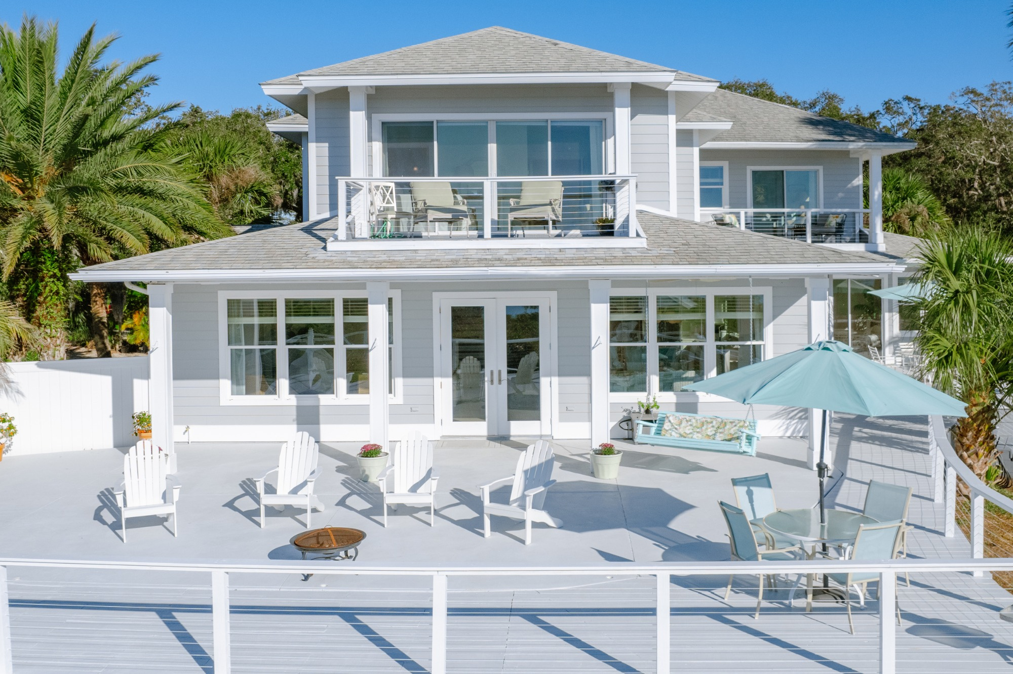 Tucked away at the end of a secluded street along the water’s edge, this elegant and tranquil enclave is home to an exquisite Coastal Craftsman Estate—offering the pinnacle of Intracoastal waterfront living. Perfectly poised on what feels like a private peninsula along the Intracoastal Waterway, this breathtaking residence delivers sweeping water views from every bed and even every window, with pristine conservation land across the waterway that will remain forever unspoiled. This rare and coveted location offers direct street access to the drivable white sands of St. Augustine Beach. Stunning architectural details and panoramic views of the ever-changing sandbar just beyond your doorstep—particularly captivating at low tide. Expansive porches and decks invite you to soak in the surrounding waterways. Whether you enjoy boating, fishing, or simply unwinding with breathtaking sunsets, this property is a true waterfront paradise.